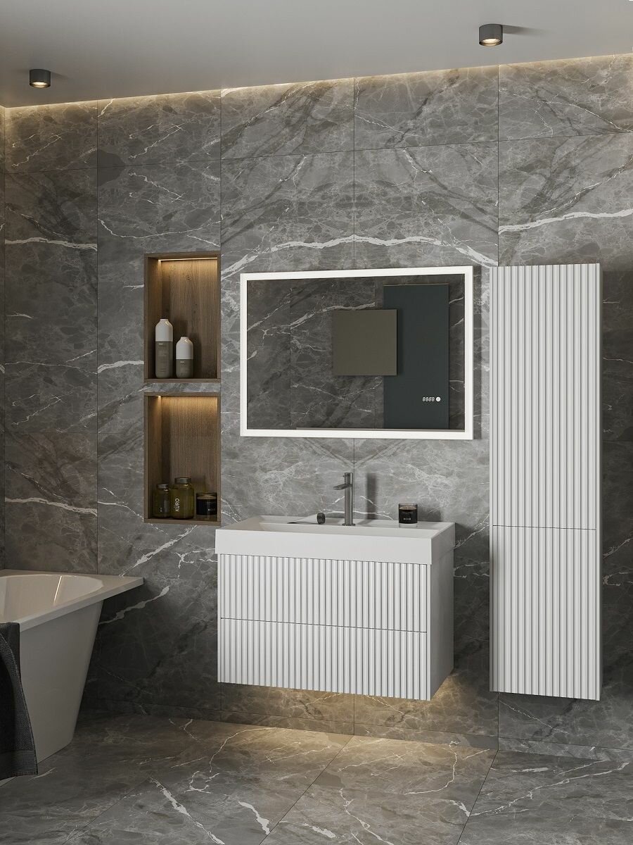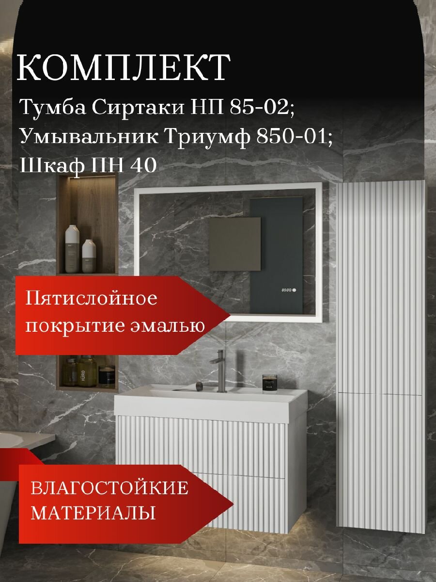 Комплект в ванную с пеналом Belux Сиртаки подвесной 85 см, Белый матовый (18), полочка сзади, чаша по центру: сравнение цен, характеристики, фото, актуальное наличие и цены.