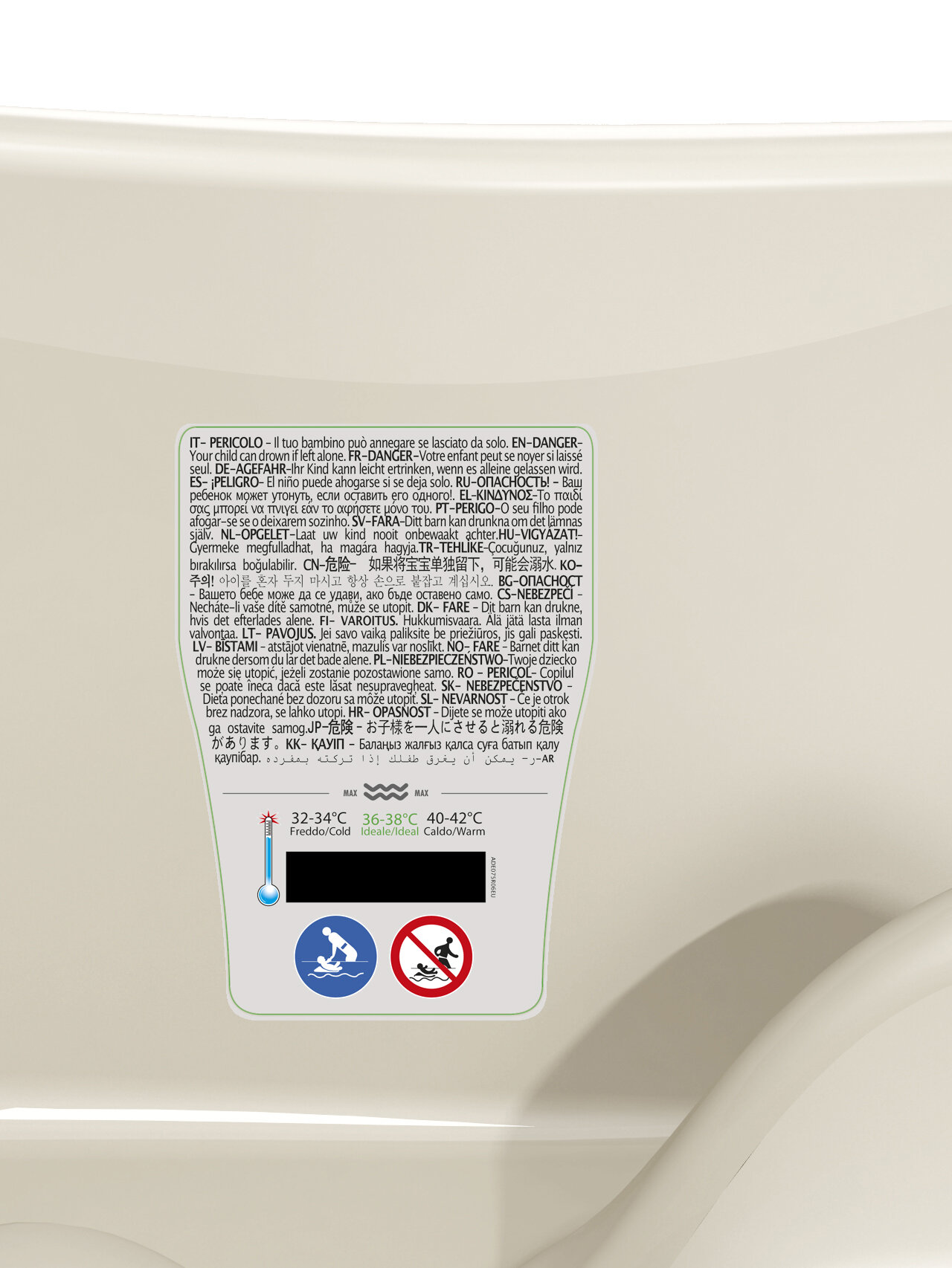 Ванночка для купания ребенка. Подходит для купания лежа до 6 месяцев и сидя – с 6 месяцев и до 1 года. Анатомическая распорка для ножек. Три точки опоры (две в подмышках и одна между ножек) для максимального комфорта малыша. Встроенный термометр и индикатор рекомендованного уровня воды. Оснащена пробкой быстрого слива.