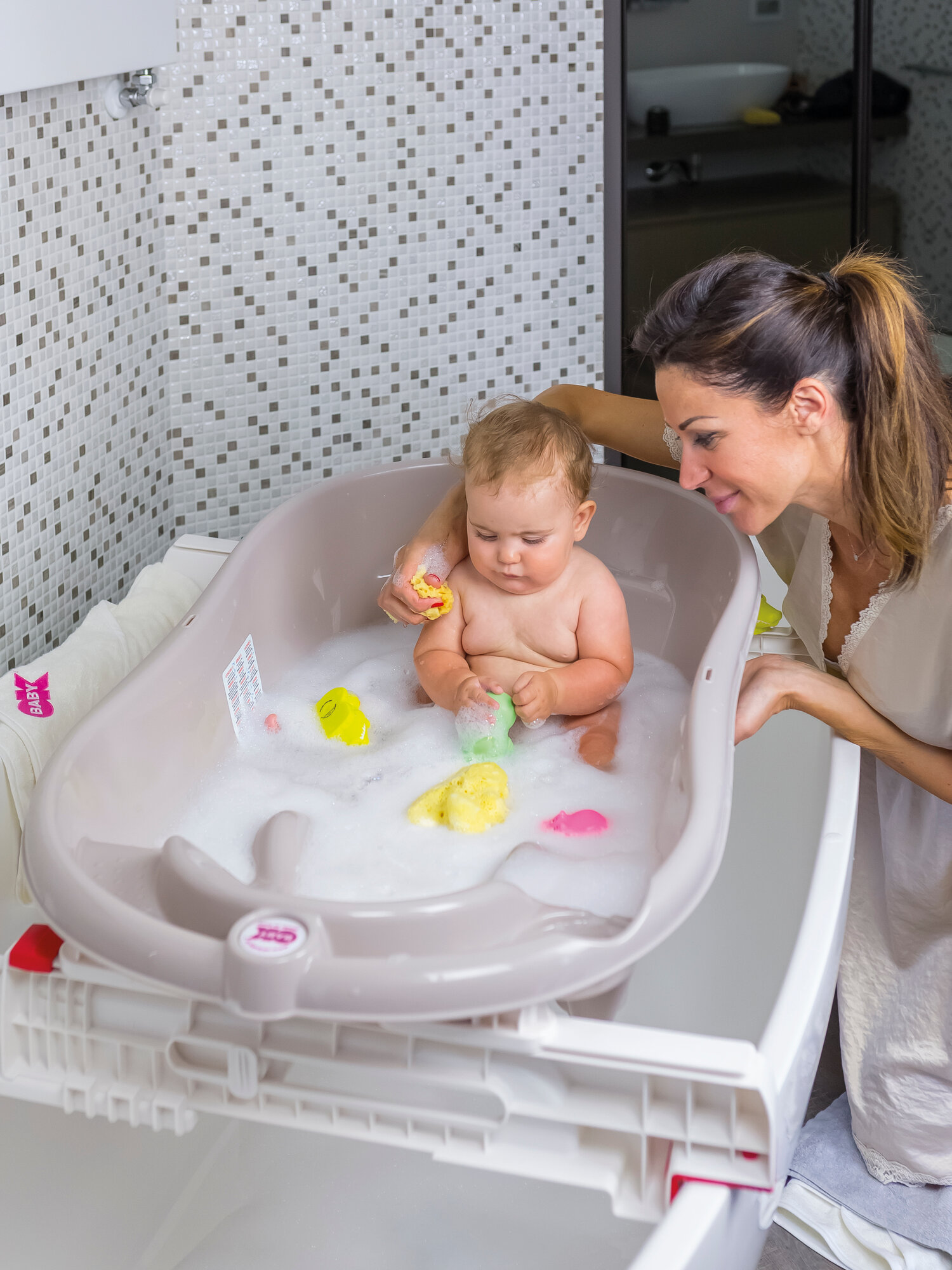 Складная подставка для ванночки Onda Baby. Компактная, при хранении не занимает много места. Ножки оснащены нескользящими резиновыми накладками. Совместима только с моделями ванночек, которые оснащены петлей для крепления ремней безопасности. Максимальная нагрузка: 15 кг. Размеры в открытом виде: 81 x 101 x 61 см, Размеры в закрытом виде: 61 x 90 x 21,5 см. Ванночка для купания ребенка. Подходит для купания лежа до 6 месяцев и сидя – с 6 месяцев и до 1 года. Анатомическая распорка для ножек. Три точки опоры (две в подмышках и одна между ножек) для максимального комфорта малыша. Встроенный термометр и индикатор рекомендованного уровня воды. Оснащена пробкой быстрого слива. Возраст: 0-12 месяцев Размеры: 54 x 28 x 94 см.