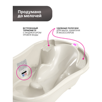 Умная ванна: Двойное сиденье: 0/6 И 6/12 месяцев 3 точки опоры: две в подмышках и одна между ног Эргономичные контуры удобно поддерживают ребенка в положении лежа или сидя Встроенные опоры безопасности помогают правильно расположить ребенка и предотвращают скольжение Встроенный термометр и индикатор рекомендуемого уровня воды Удобные полочки для банных принадлежностей или игрушекПробка быстрого слива с ключом безопасности. Подставка Metal Bath cкладная подставка для ванны обеспечивает комфорт и безопасность во время купания. Подставка легко складывается и хранится, имеет нескользящие резиновые накладки на ножках и удобный механизм слива воды через шланг и воронку. Подходит для моделей ванн Onda, выпущенных с 2014 года. Размеры в разложенном состоянии: 90 × 94 × 85 см, в сложенном виде: 90 × 108 × 36 см.