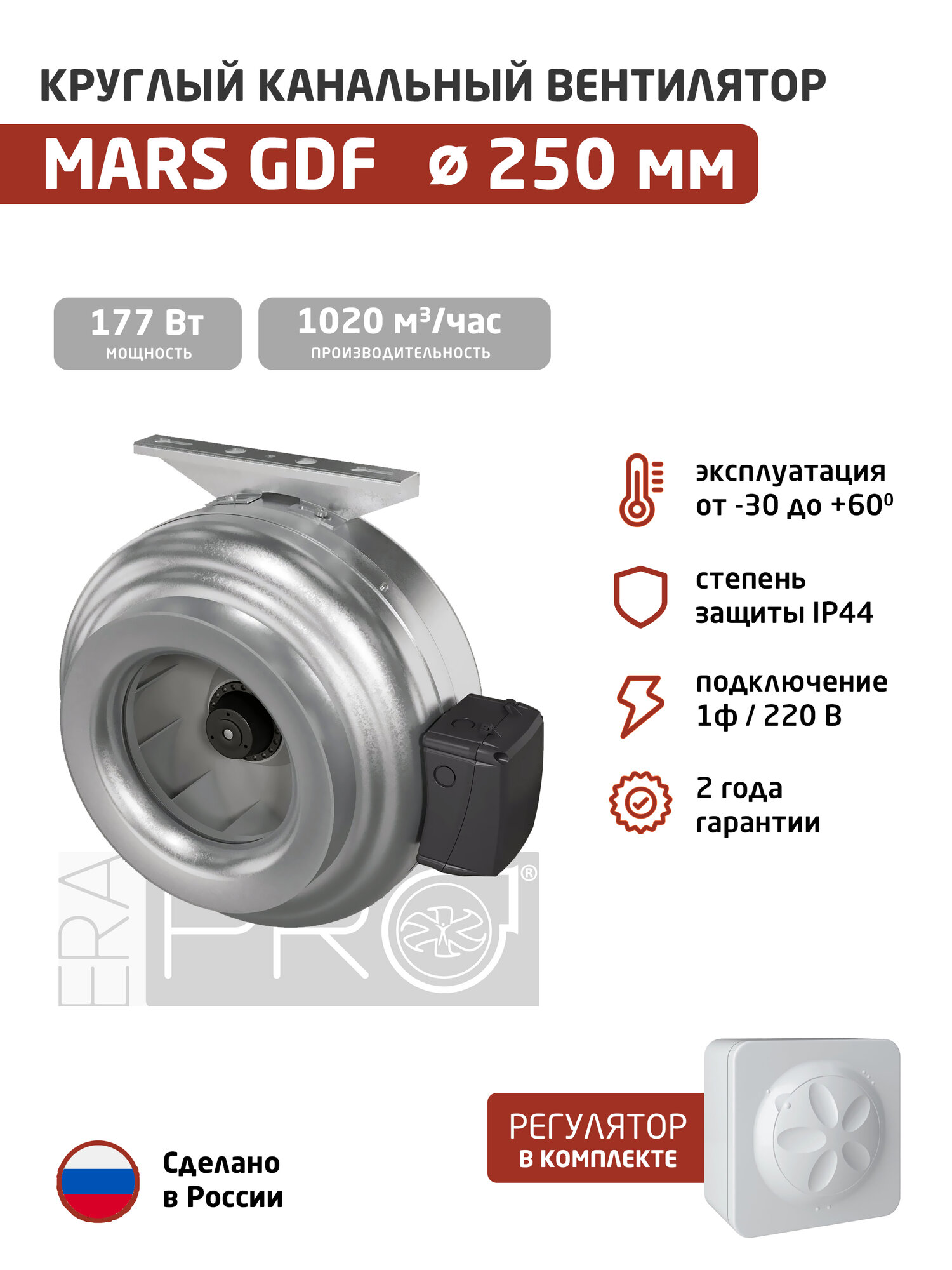 Купить Комплект вентилятор канальный ERA PRO Mars GDF 250 с регулятором (1ф/220, 177 Вт, 1020 м3/час) для круглых воздуховодов с доставкой по всей России. Комплект вентилятор канальный ERA PRO Mars GDF 250 с регулятором (1ф/220, 177 Вт, 1020 м3/час) для круглых воздуховодов: сравнение цен, характеристики, фото, актуальное наличие и цены.