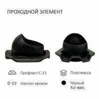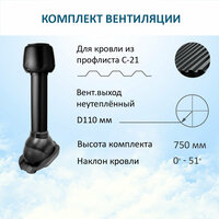 Купить Комплект вентиляции: колпак D110, вент. выход 110, для кровельного профнастила С-21, черный с доставкой по всей России.