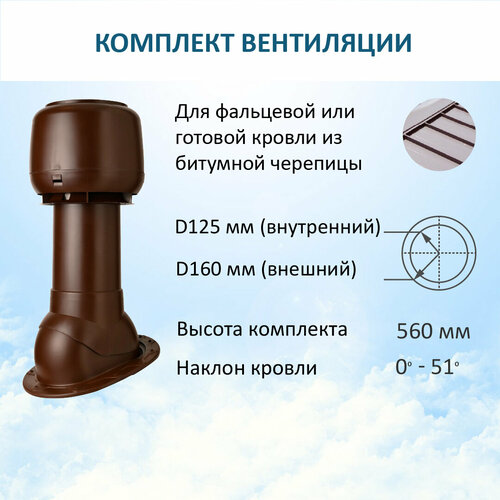 Комплект вентиляции: Колпак D160, вент. выход утепленный высотой Н-500, для скатной кровли, коричневый: сравнение цен, характеристики, фото, актуальное наличие и цены.
