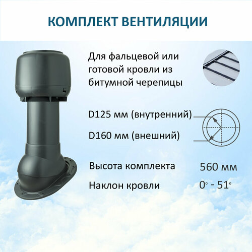 Комплект вентиляции: Колпак D160, вент. выход утепленный высотой Н-500, для скатной кровли, серый: сравнение цен, характеристики, фото, актуальное наличие и цены.