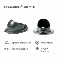 Купить Комплект вентиляции: Колпак D160, вент. выход утепленный высотой Н-700, для металлочерепицы Monterrey, серый с доставкой по всей России.