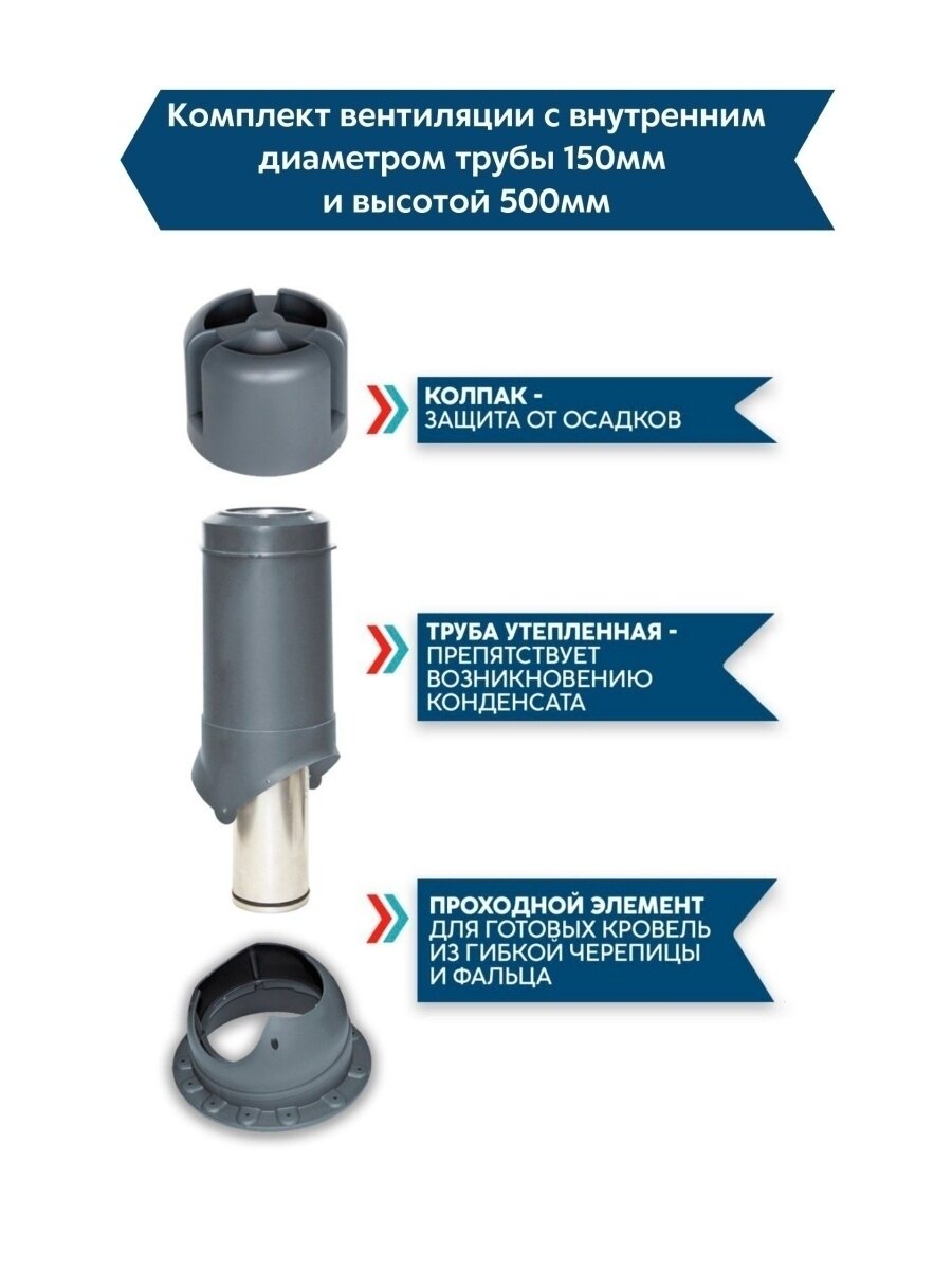Комплект вентиляции утеплённый для готовых кровель из гибкой черепицы и фальца 150/500 / Дефлектор: сравнение цен, характеристики, фото, актуальное наличие и цены.