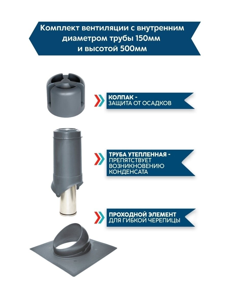 Комплект вентиляции утеплённый для кровли из гибкой черепицы 150-500 / Вентиляция дома / Крыши: сравнение цен, характеристики, фото, актуальное наличие и цены.