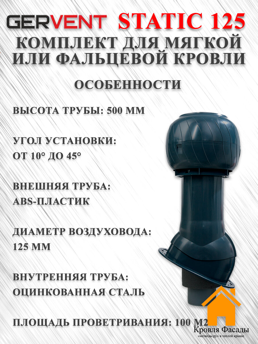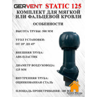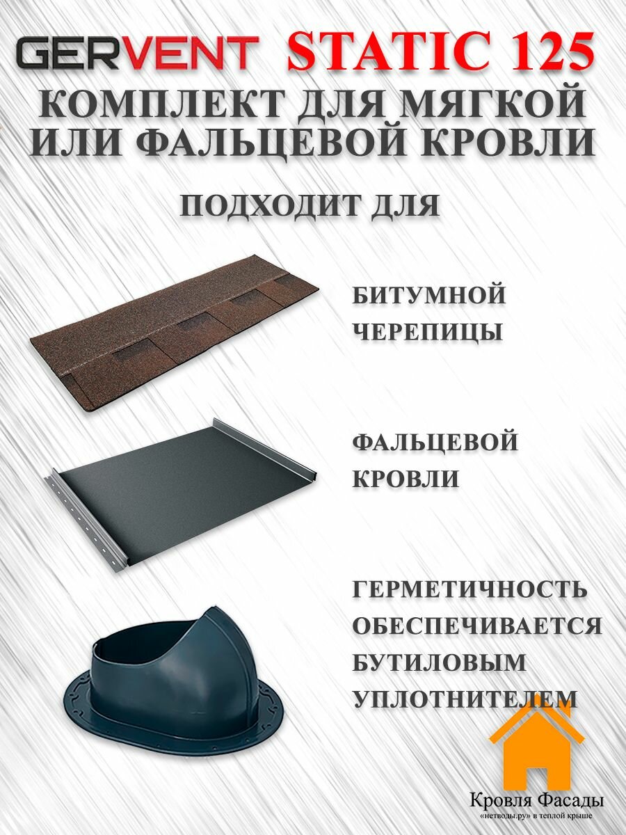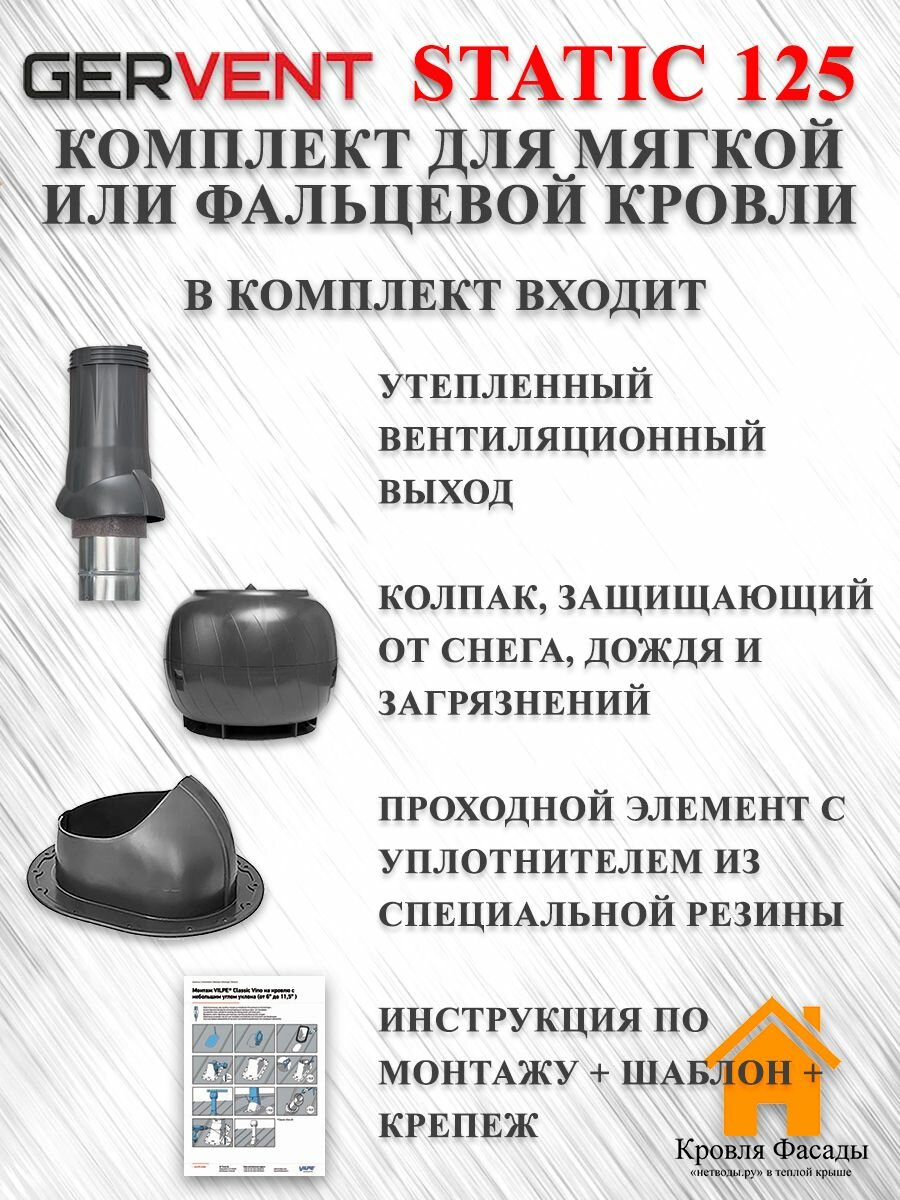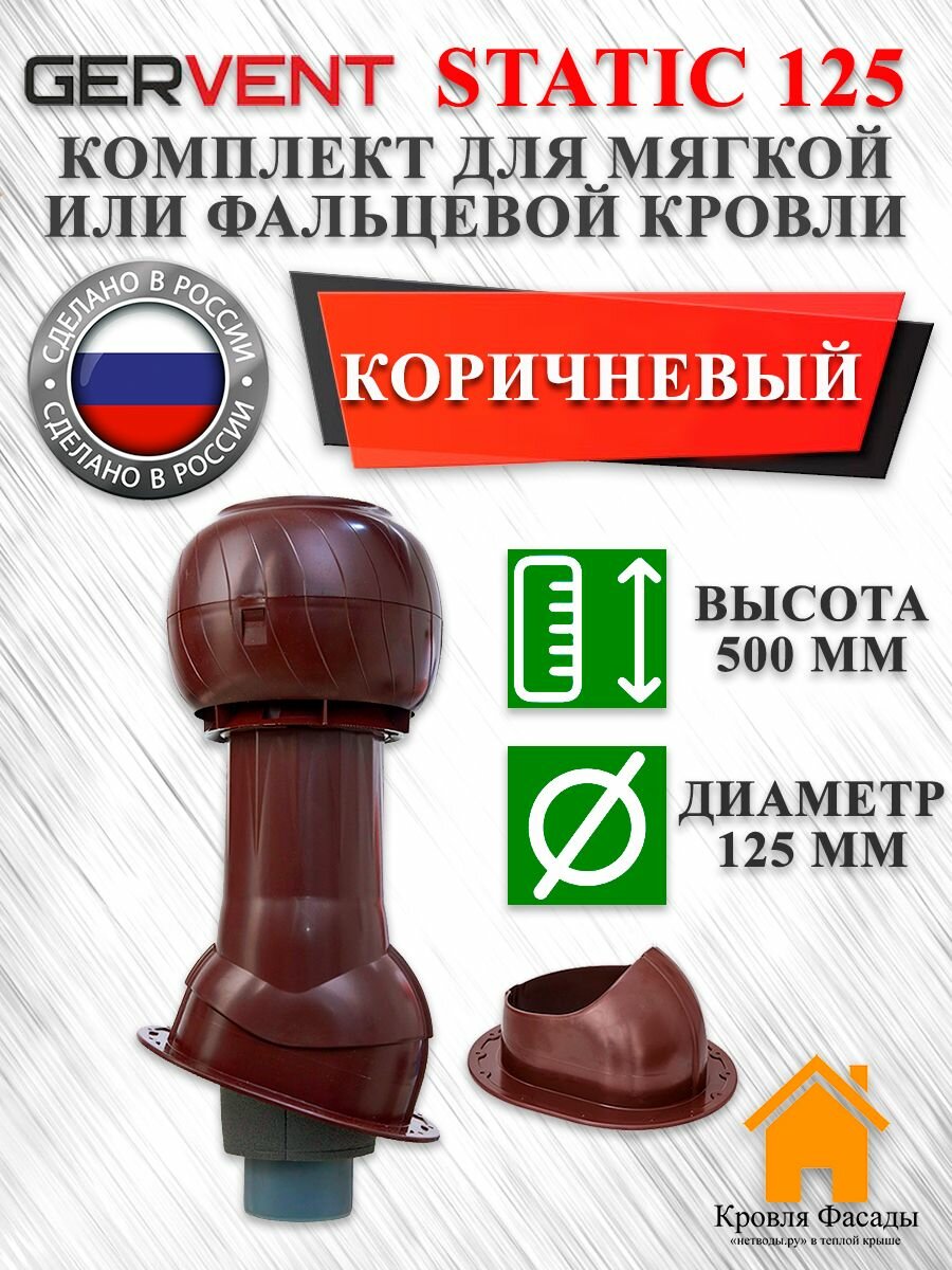 Комплект вентиляционного выхода на крышу GERVENT Static 125 мм утепленный для мягкой и фальцевой кровли, Коричневый, гервент: сравнение цен, характеристики, фото, актуальное наличие и цены.
