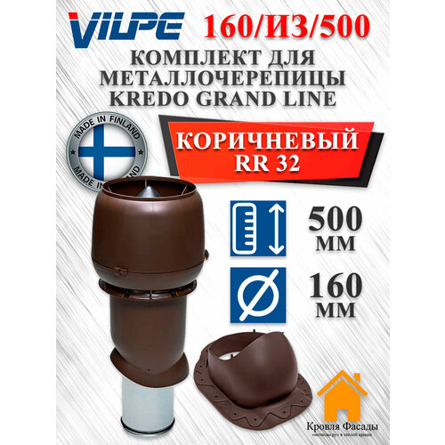 Комплект вентиляционного выхода Vilpe 160/из/500 Вилпе для металлочерепицы Kredo (Кредо) GrandLine