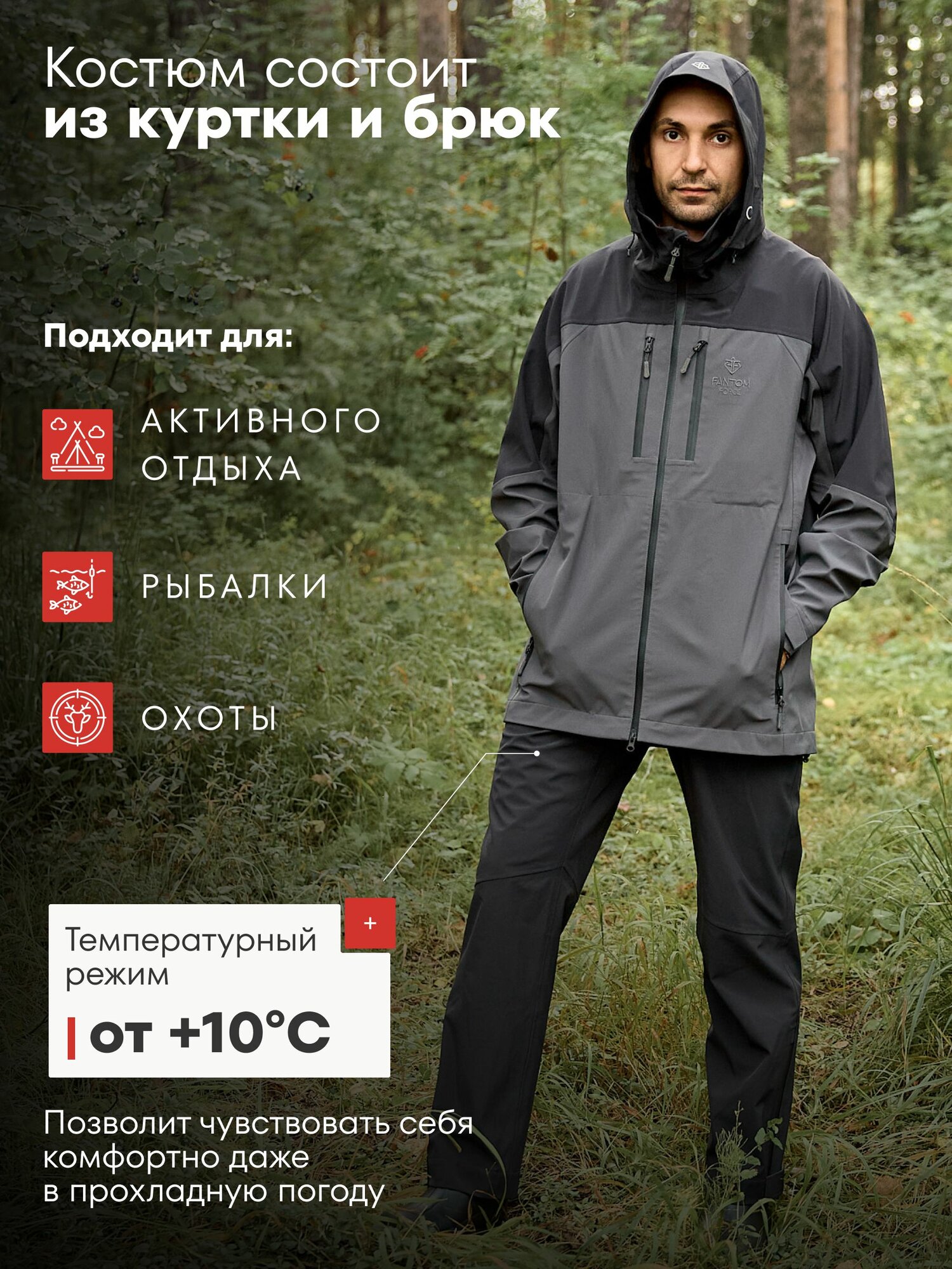 Купить Комплект верхней одежды Fantom Force, размер 48-50 (182-188), черный/серый с доставкой по всей России.