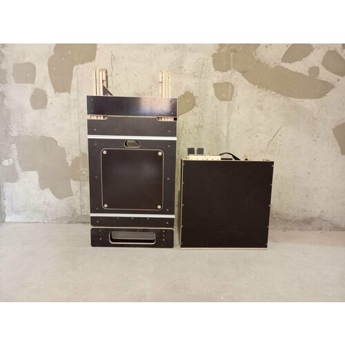 Складной верстак для ОДНОВРЕМЕННОЙ работы на паркетной, торцовочной пилах и фрезере из серии "Верстаки "Системы Сергеева". В сложенном состоянии стол имеет размеры 56х9х109см. Легко уместить в багажнике автомобиля. В разложенном состоянии столешница имеет размеры 56х140см. Высота стола меняется: 75, 85, 95см. Стол можно хранить на даче и в сарае, т. к. он выполнен из водостойкой ламинированной фанеры.