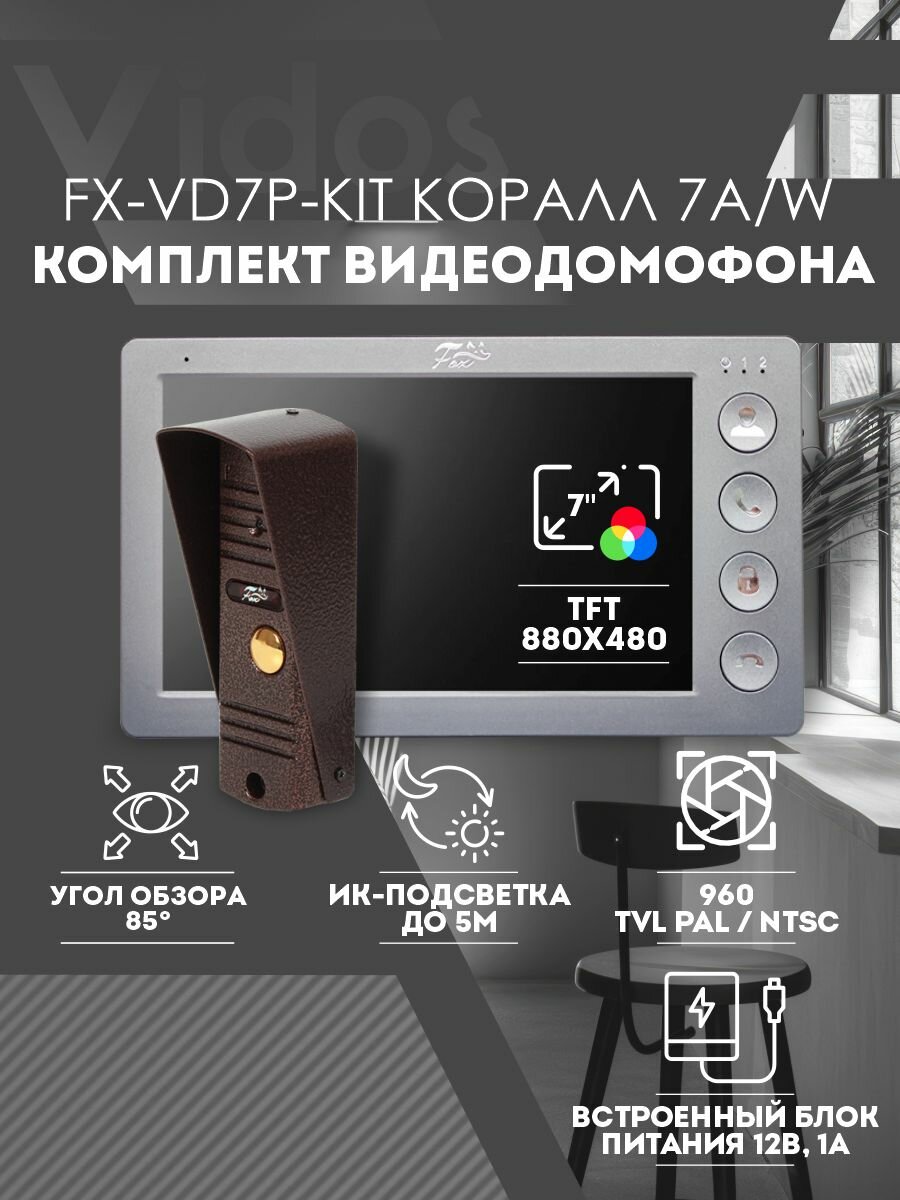Купить Комплект видеодомофона 7″ FX-VD7P-KIT (КОРАЛЛ 7A), графит, 880х480, 960ТВЛ с доставкой по всей России.