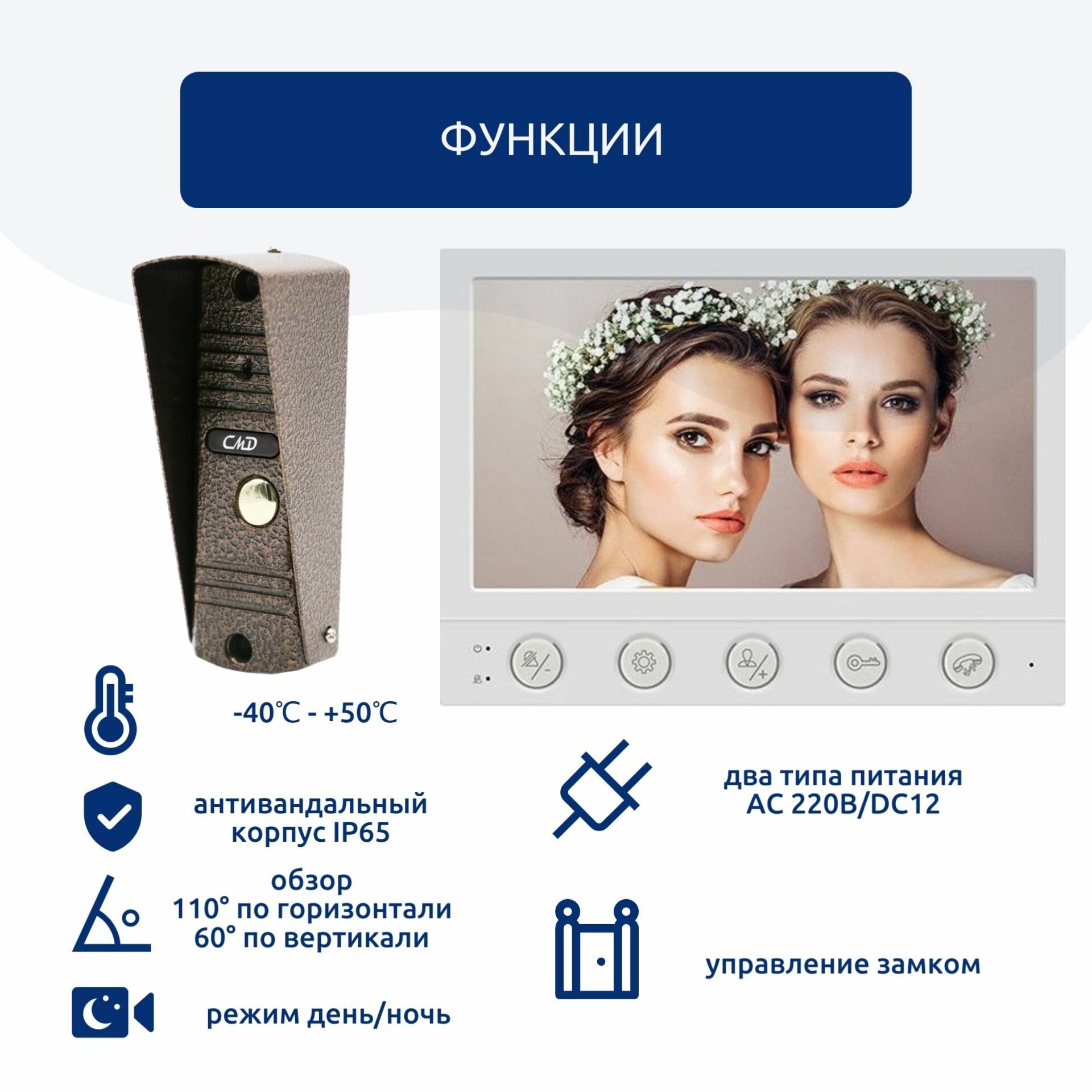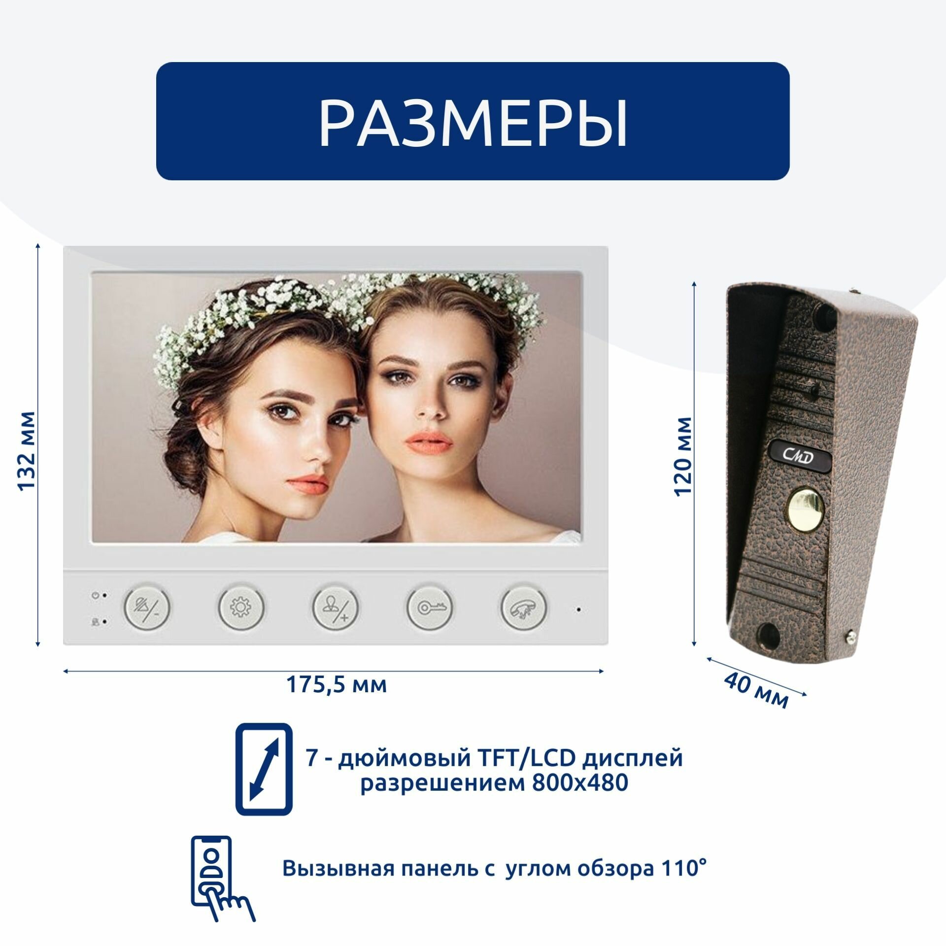 Комплект видеодомофона VD70 и вызывной панели VP60C-110 (цвет медь) Представляем вам комплект видеодомофона CMD-VD70-KIT, идеальное решение для обеспечения безопасности вашего дома или квартиры.