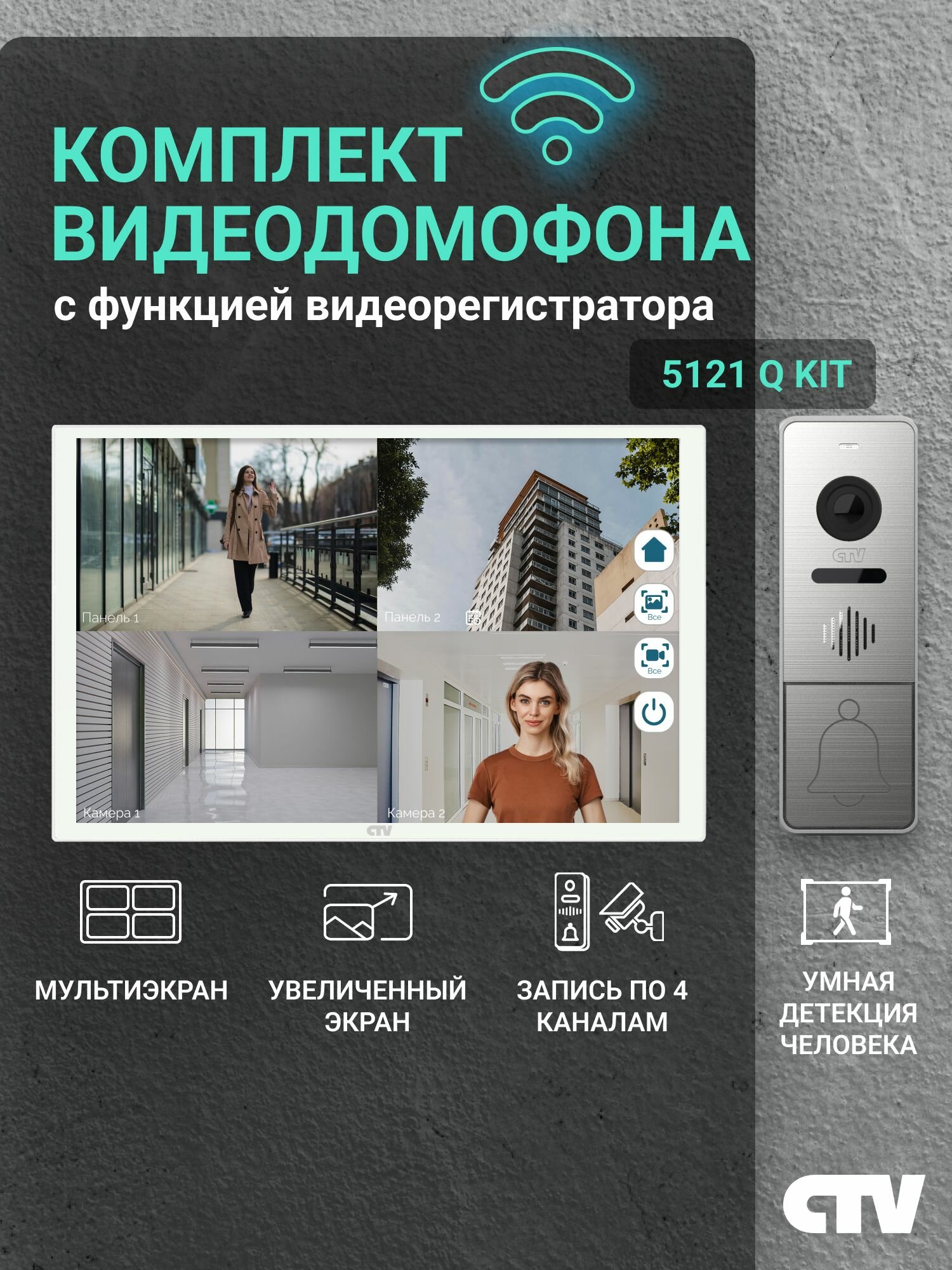 Комплект видеодомофона для квартиры и частного дома CTV KIT 5121Q с Wi-Fi и записью и квадратором, белый-серебро: сравнение цен, характеристики, фото, актуальное наличие и цены.