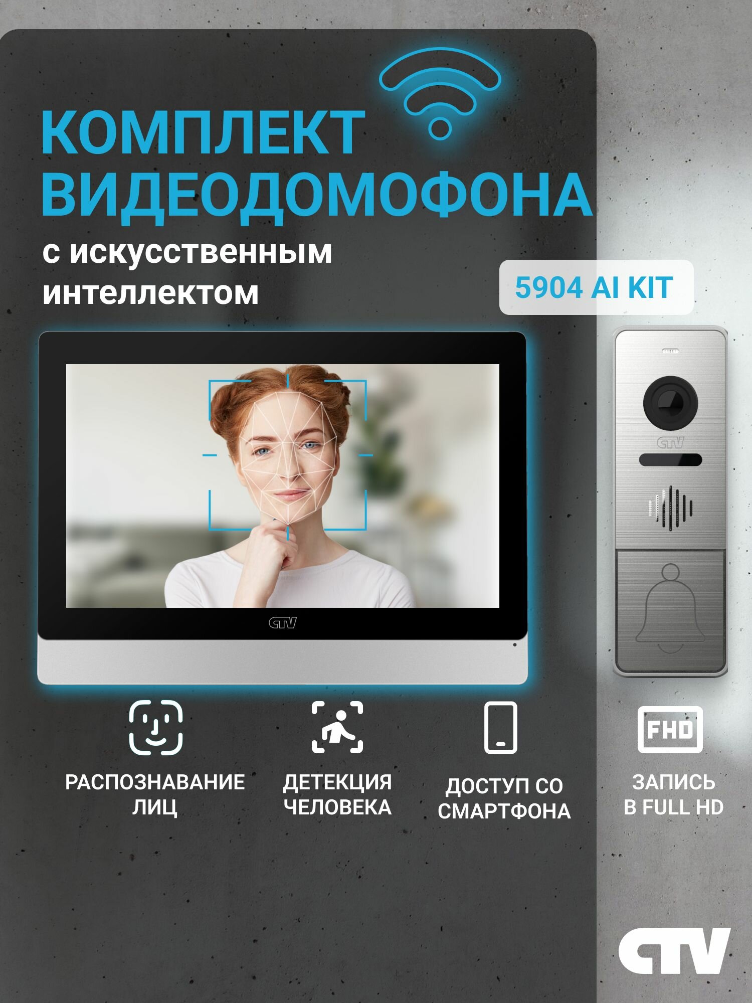 Комплект видеодомофона для квартиры и частного дома CTV KIT 5904Ai с Wi-Fi и записью, Черный- Серебро: сравнение цен, характеристики, фото, актуальное наличие и цены.