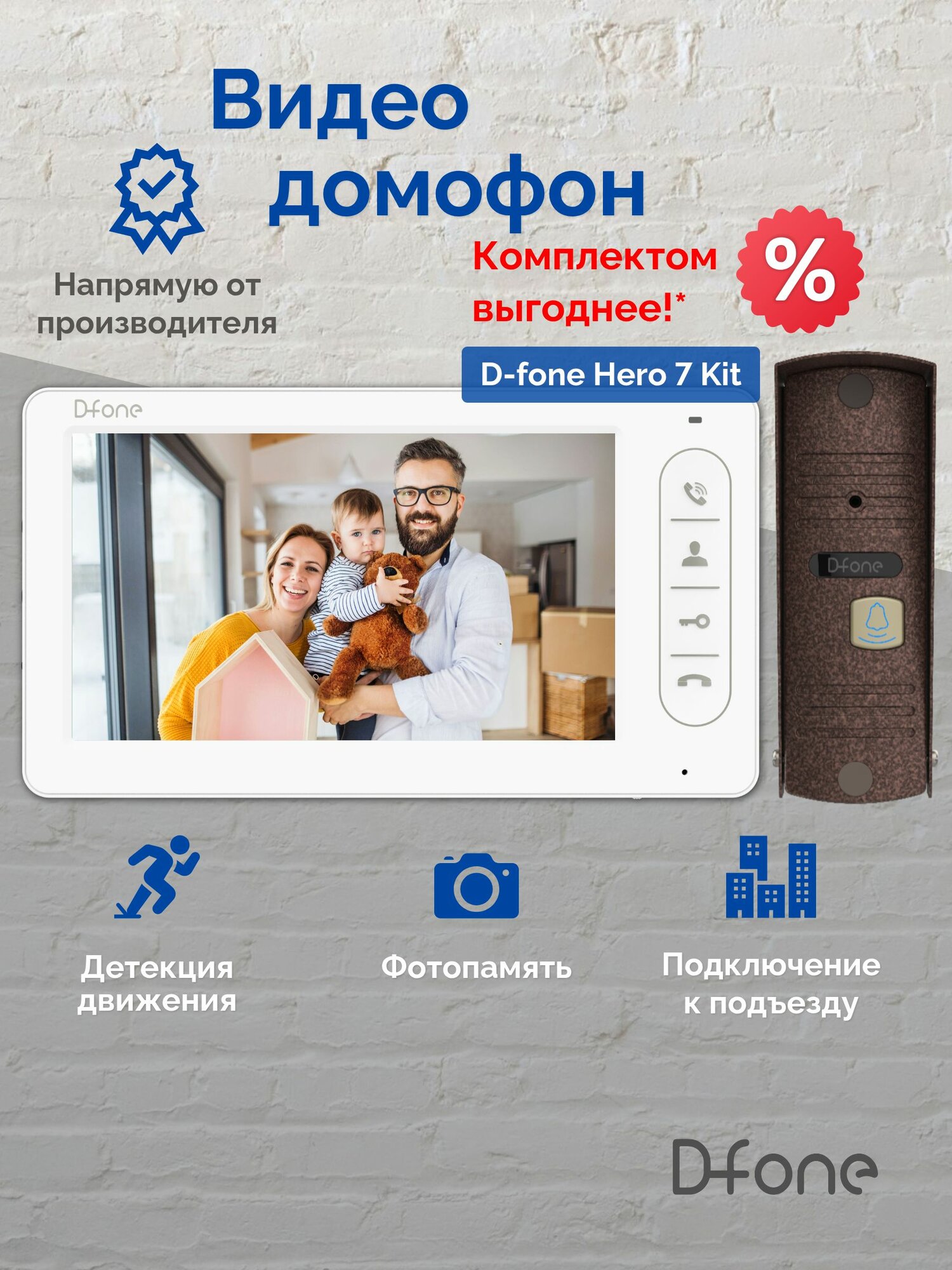 Комплект видеодомофона для квартиры и частного дома D-fone Hero 7 Kit, белый-бронза: сравнение цен, характеристики, фото, актуальное наличие и цены.