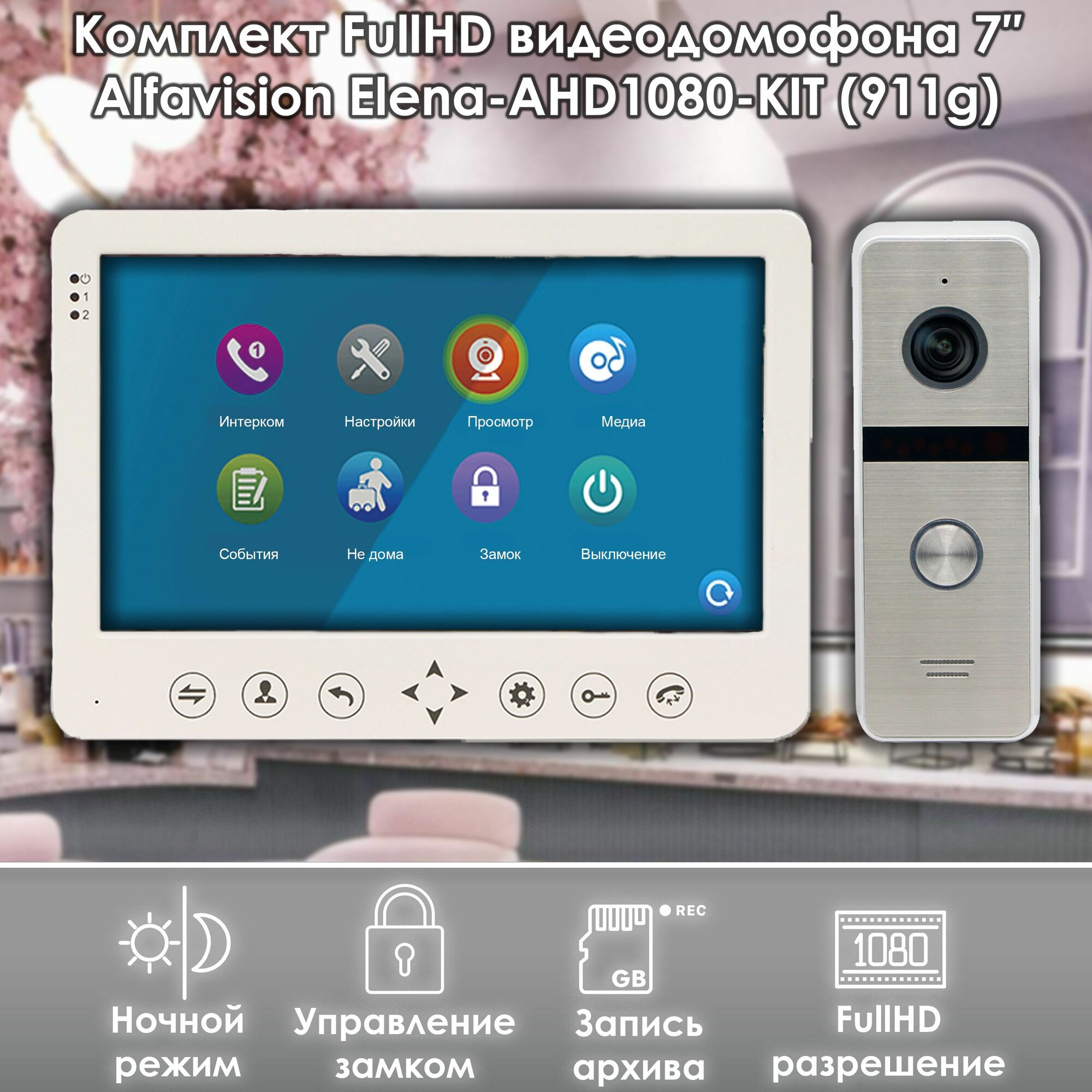 Комплект видеодомофона Elena-AHD1080P-KIT (911sl), 7 дюймов, FullHD. Видеодомофон в квартиру / в подъезд / для частного дома: сравнение цен, характеристики, фото, актуальное наличие и цены.
