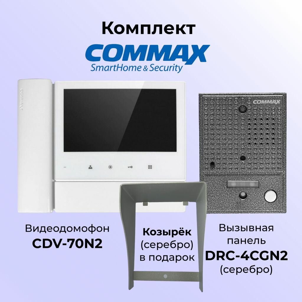 Купить Комплект видеодомофона и вызывной панели COMMAX CDV-70N2 (белый)/DRC-4CGN2(серебро)+Козырек с доставкой по всей России.