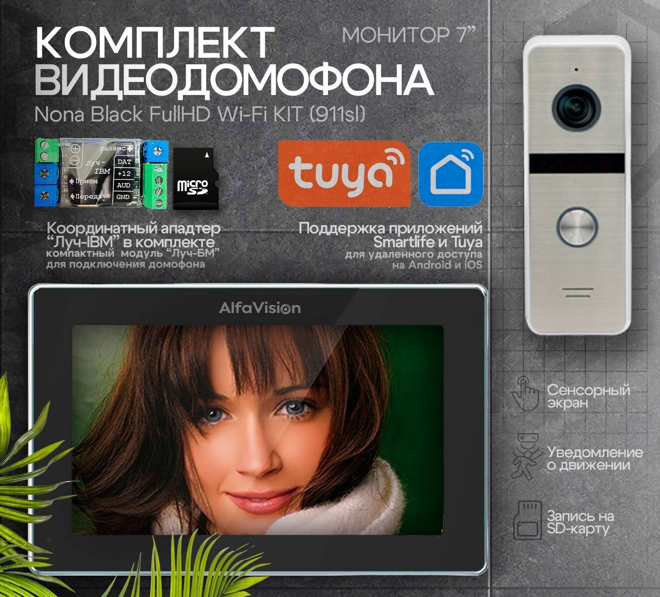 Купить Комплект видеодомофона Nona Black Wi-Fi KIT AHD1080P (911sl) + Модуль сопряжения «Луч-IBM»+ Карта памяти с доставкой по всей России.
