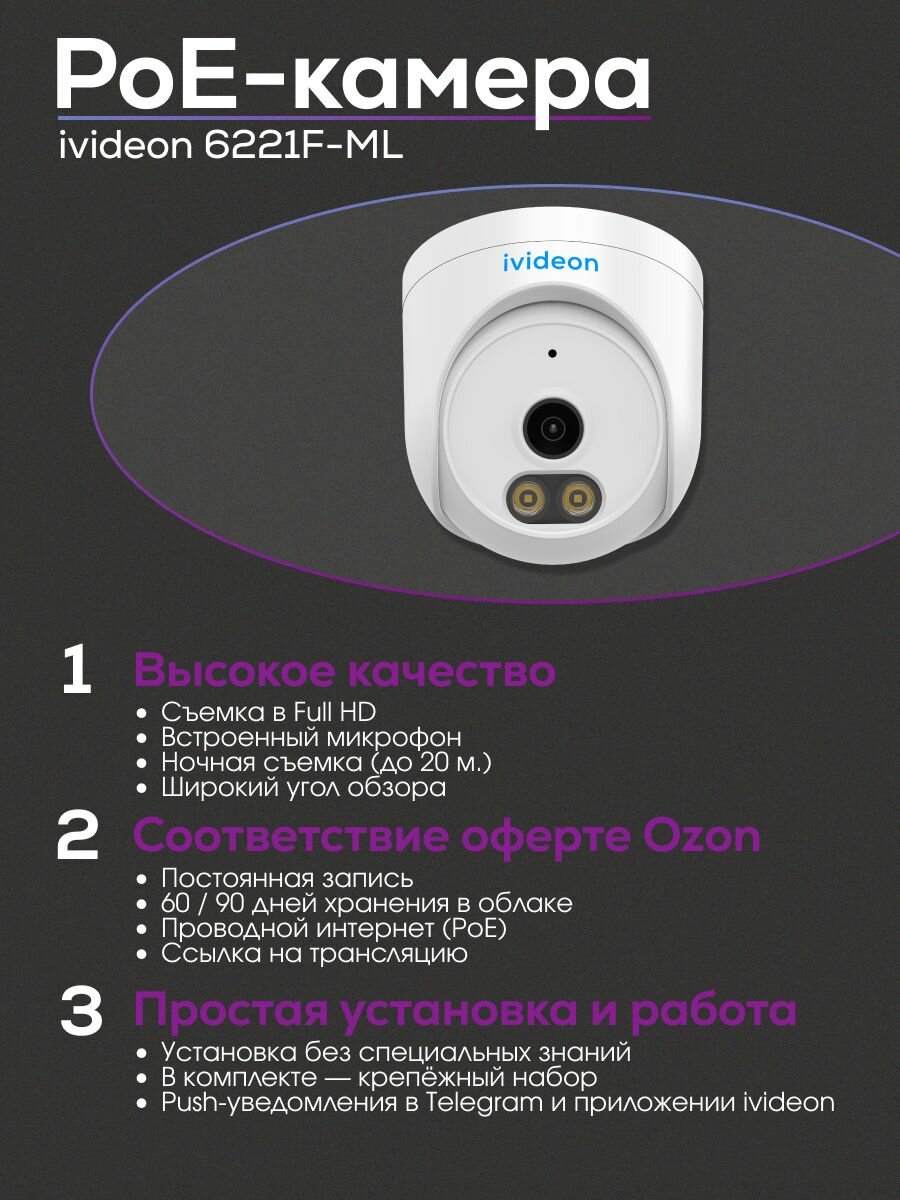 Камера видеонаблюдения для ПВЗ Ivideon 6221F-ML, Full HD, ИК-подсветка, PoE-питание