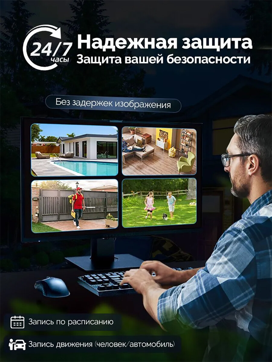 Комплект видеонаблюдения на 4 камеры для частного дома, комплект уличного видеонаблюдения wifi для дачи, беспроводной, видеорегистратор, жесткий диск: сравнение цен, характеристики, фото, актуальное наличие и цены.