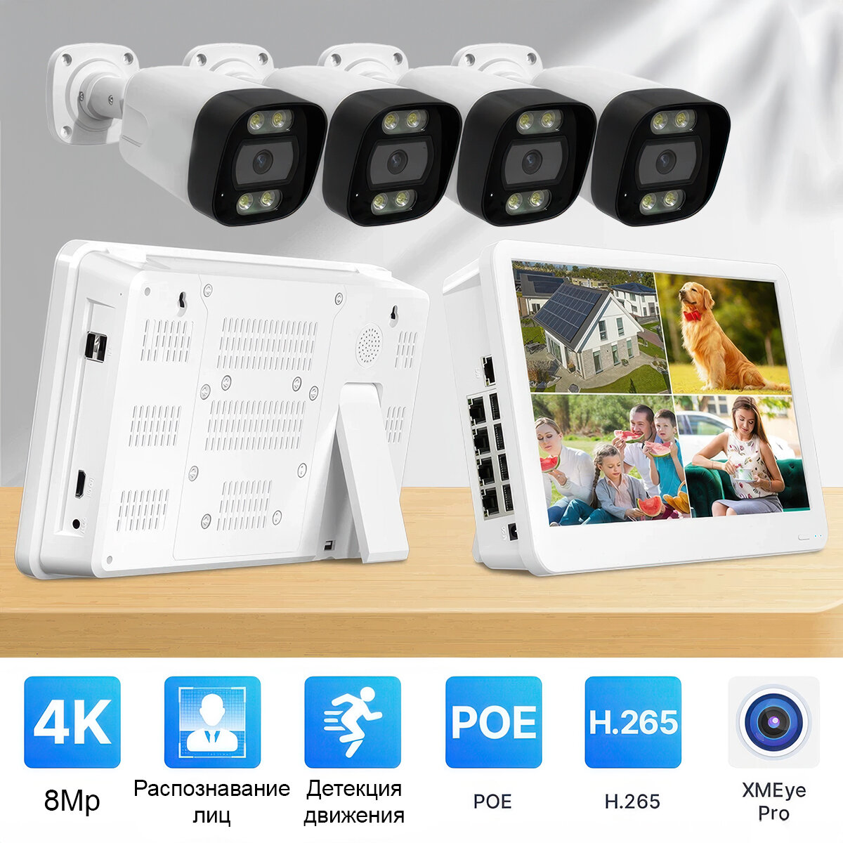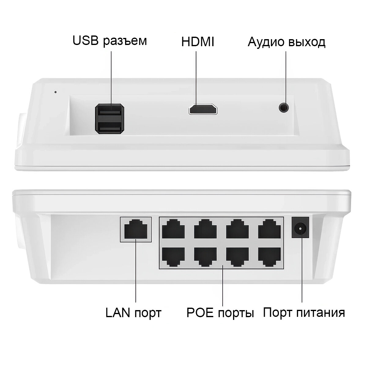 - Преимущества: двусторонняя аудиосвязь, детекция человека и лица в кадре, поддержка POE питания, регистратор с 12 дюймовым экраном.