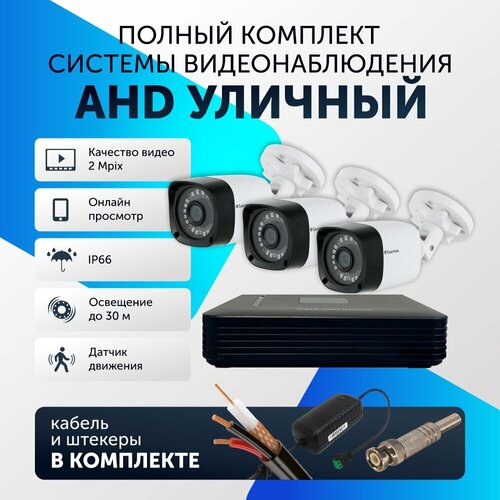 Готовый комплект AHD TVI CVI CVBS 3 камеры уличные FullHD 2MP