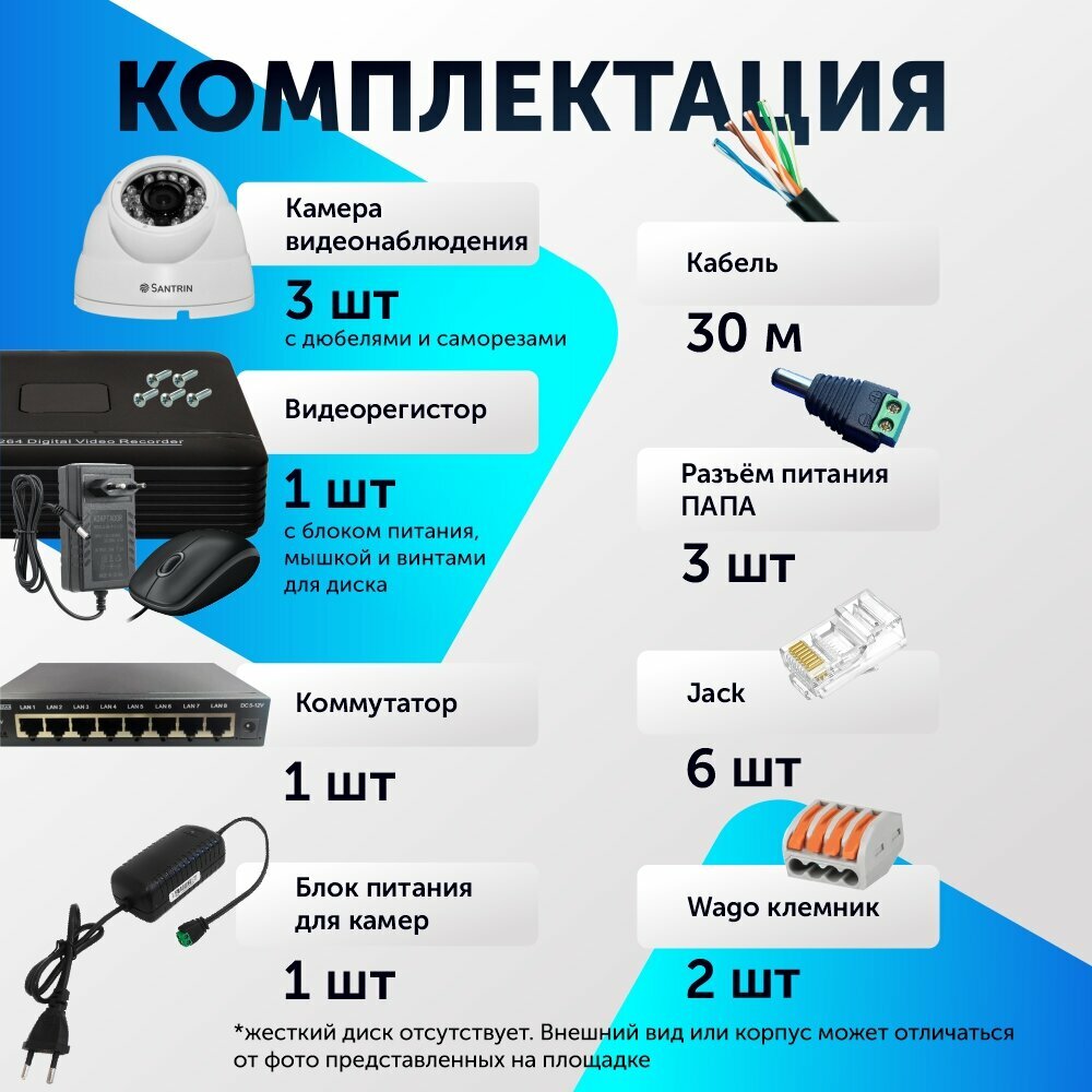 Купить Комплект видеонаблюдения цифровой, готовый комплект IP 3 камеры купольные FullHD 2MP с доставкой по всей России. Комплект видеонаблюдения цифровой, готовый комплект IP 3 камеры купольные FullHD 2MP: сравнение цен, характеристики, фото, актуальное наличие и цены.