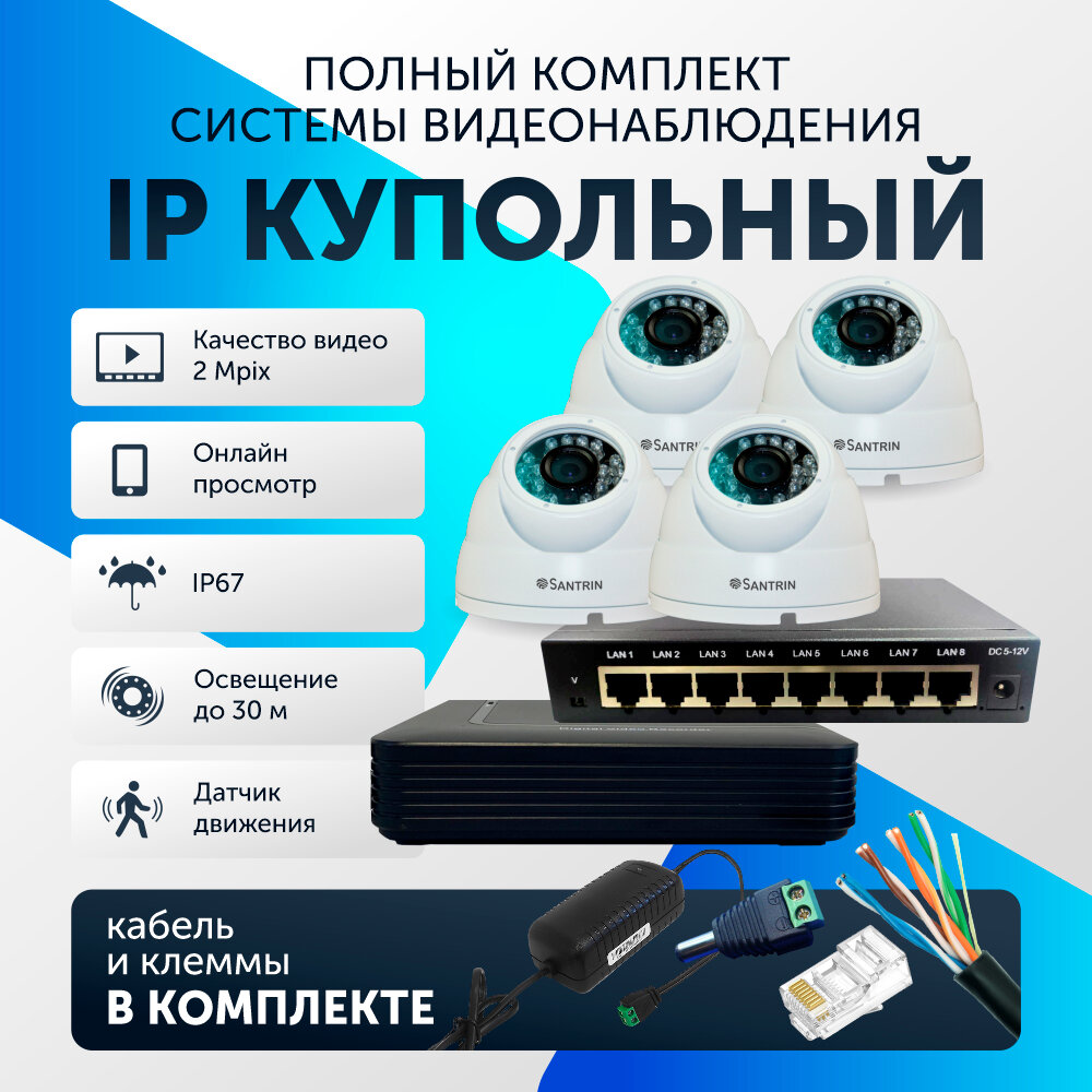 Купить Комплект видеонаблюдения цифровой, готовый комплект IP 4 камеры купольные FullHD 2MP с доставкой по всей России.