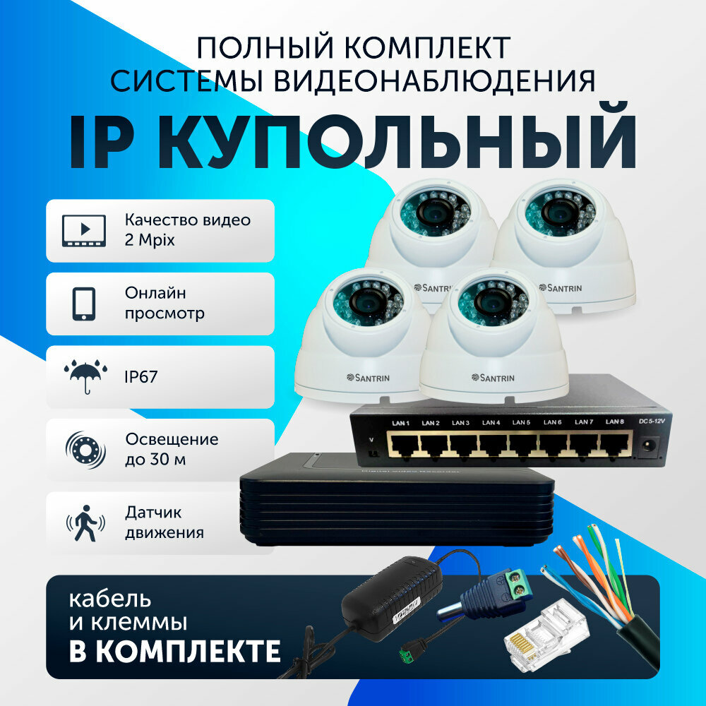 Купить Комплект видеонаблюдения цифровой, готовый комплект IP 4 камеры купольные FullHD 2MP с доставкой по всей России. Комплект видеонаблюдения цифровой, готовый комплект IP 4 камеры купольные FullHD 2MP: сравнение цен, характеристики, фото, актуальное наличие и цены.