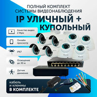 Комплект видеонаблюдения цифровой, готовый комплект IP 8 камер уличные и купольные FullHD 2MP