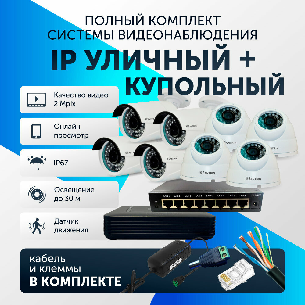 Купить Комплект видеонаблюдения цифровой, готовый комплект IP 8 камер уличные и купольные FullHD 2MP с доставкой по всей России.