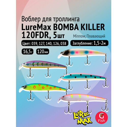 Комплект воблеров для троллинга (судак): 5 штук LureMax BOMBA KILLER 120FDR 16,5г. цвета 039, 127, 140, 126, 038: сравнение цен, характеристики, фото, актуальное наличие и цены.