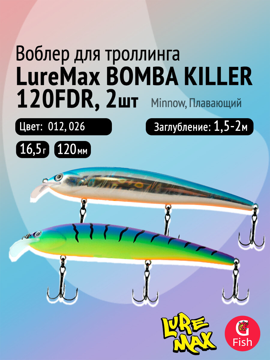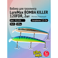 Комплект воблеров для троллинга (судак, щука): 2 штуки LureMax BOMBA KILLER 120FDR 16,5 г Плавающий, цвета 012, 026