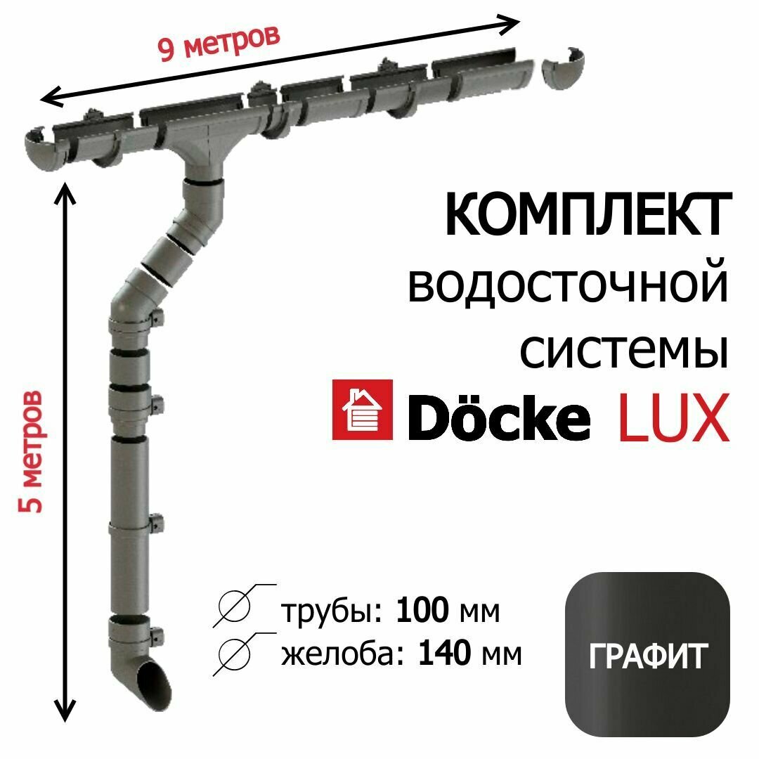 Купить Водосток для крыши дома 9 метров Docke Lux, Графит / водосток для крыши, RAL 7024 с доставкой по всей России.