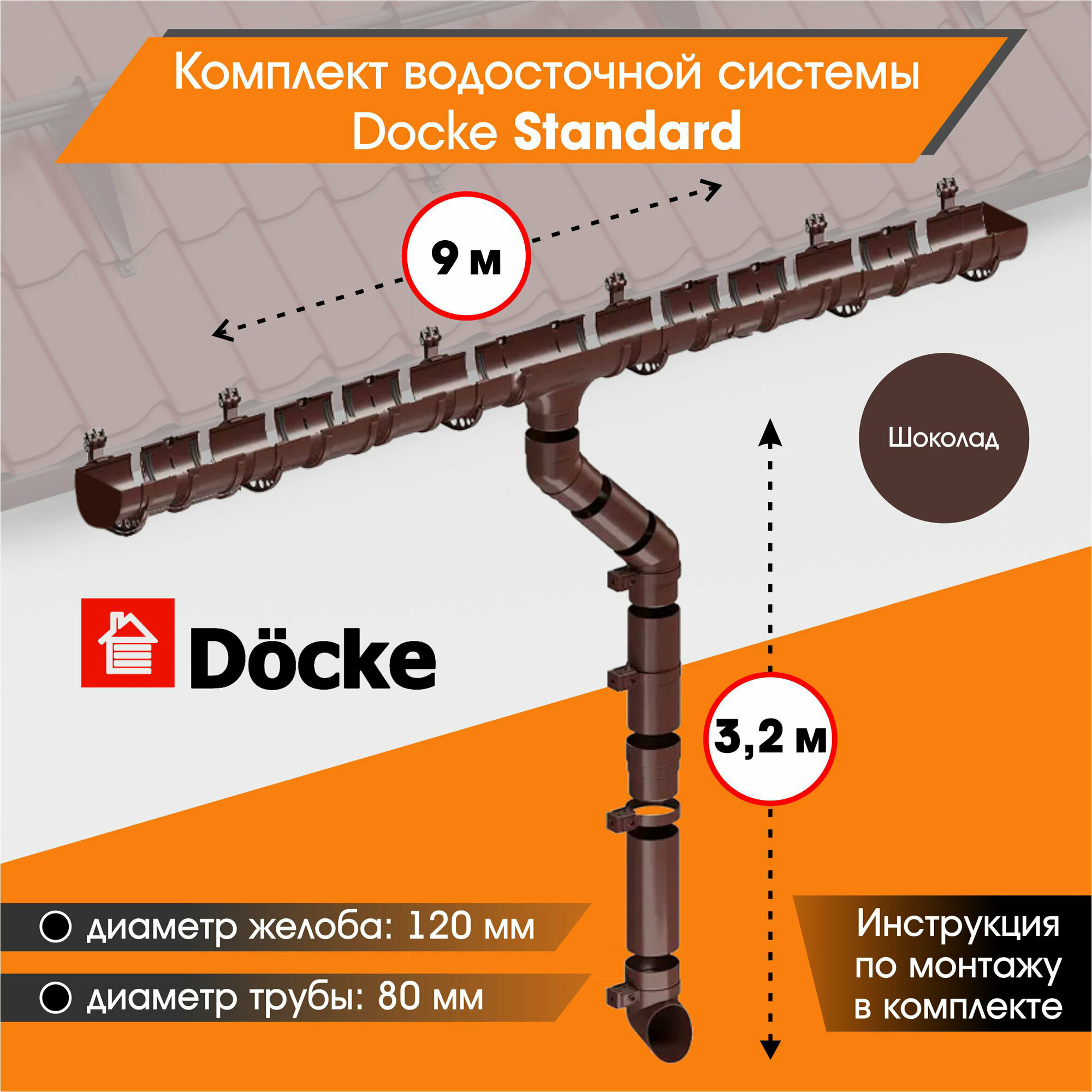Комплект водосточной системы Docke Standard для ската 9м, Шоколад (RAL 8017): сравнение цен, характеристики, фото, актуальное наличие и цены.