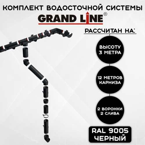 Комплект водосточной системы Grand Line черный 12 метров (2 слива) (120мм/90мм) водосток для крыши пластиковый Гранд Лайн янтарный черный (RAL 9005): сравнение цен, характеристики, фото, актуальное наличие и цены.