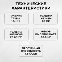 | Тип элемента | воронка, желоб, заглушка желоба, колено, муфта, соединитель желобов, труба водосточная, хомут трубы |