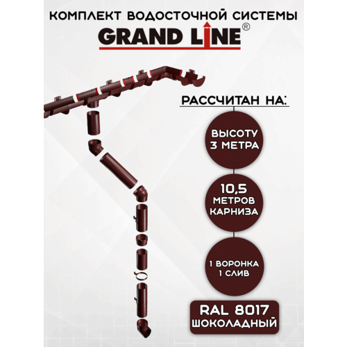 Комплект водосточной системы Grand Line шоколад 10,5 метров (1 слив) (120мм/90мм) водосток для крыши пластиковый Гранд Лайн коричневый (RAL 8017): сравнение цен, характеристики, фото, актуальное наличие и цены.