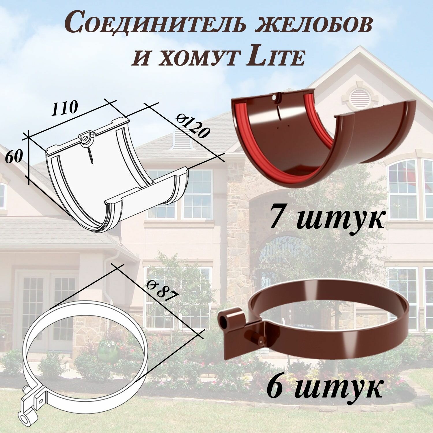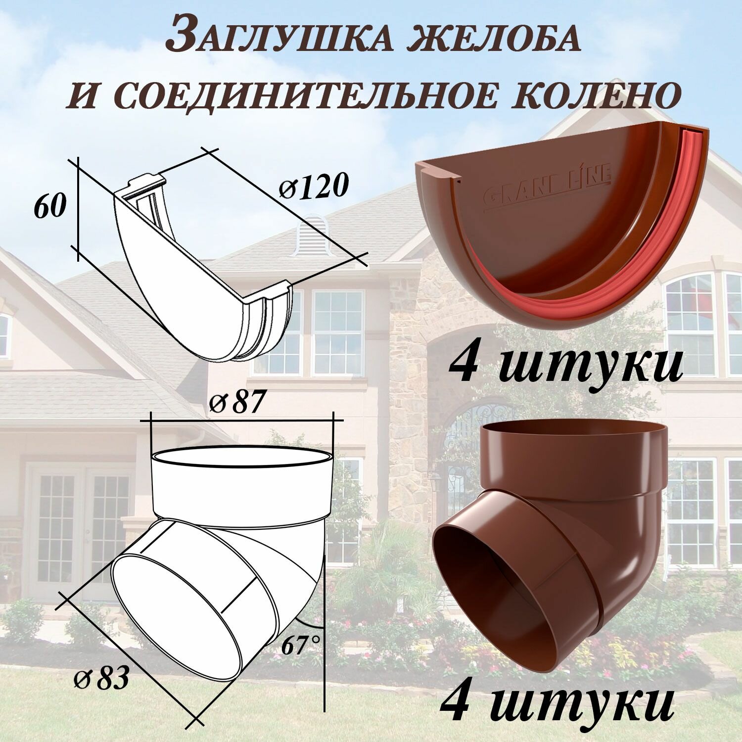 | Тип элемента | воронка, желоб, заглушка желоба, колено, муфта, соединитель желобов, труба водосточная, хомут трубы |