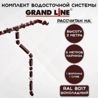 Комплект водосточной системы Grand Line для ската 6м, Шоколад (RAL 8017): сравнение цен, характеристики, фото, актуальное наличие и цены.