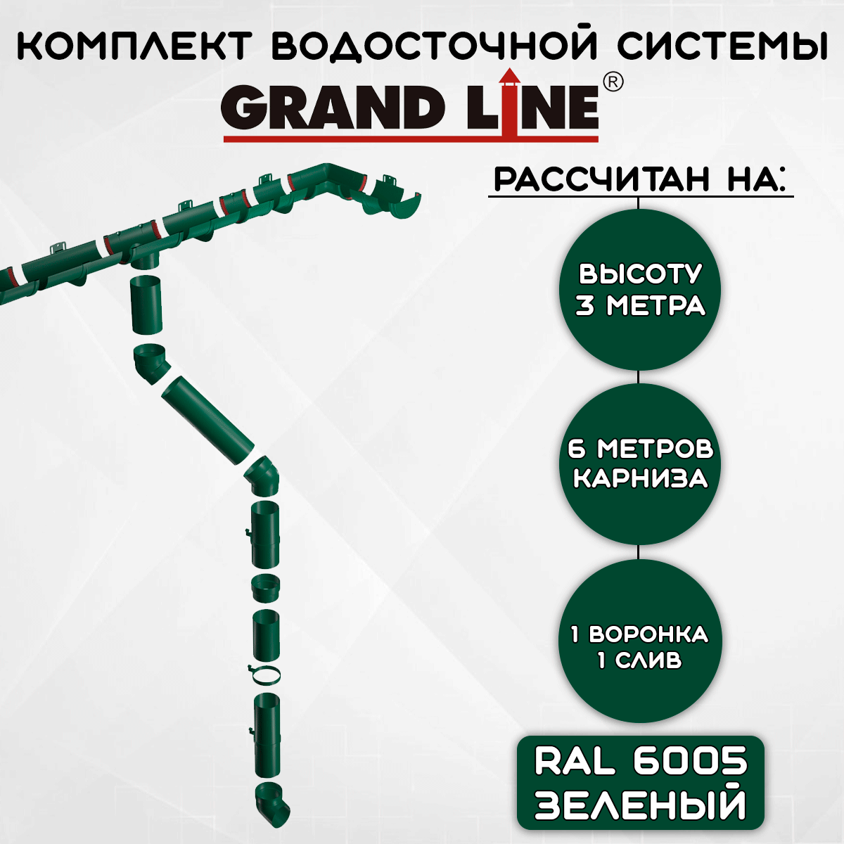 Комплект водосточной системы Grand Line зеленый 6 метров (120мм/90мм) водосток для крыши пластиковый Гранд Лайн зеленый мох (RAL 6005): сравнение цен, характеристики, фото, актуальное наличие и цены.