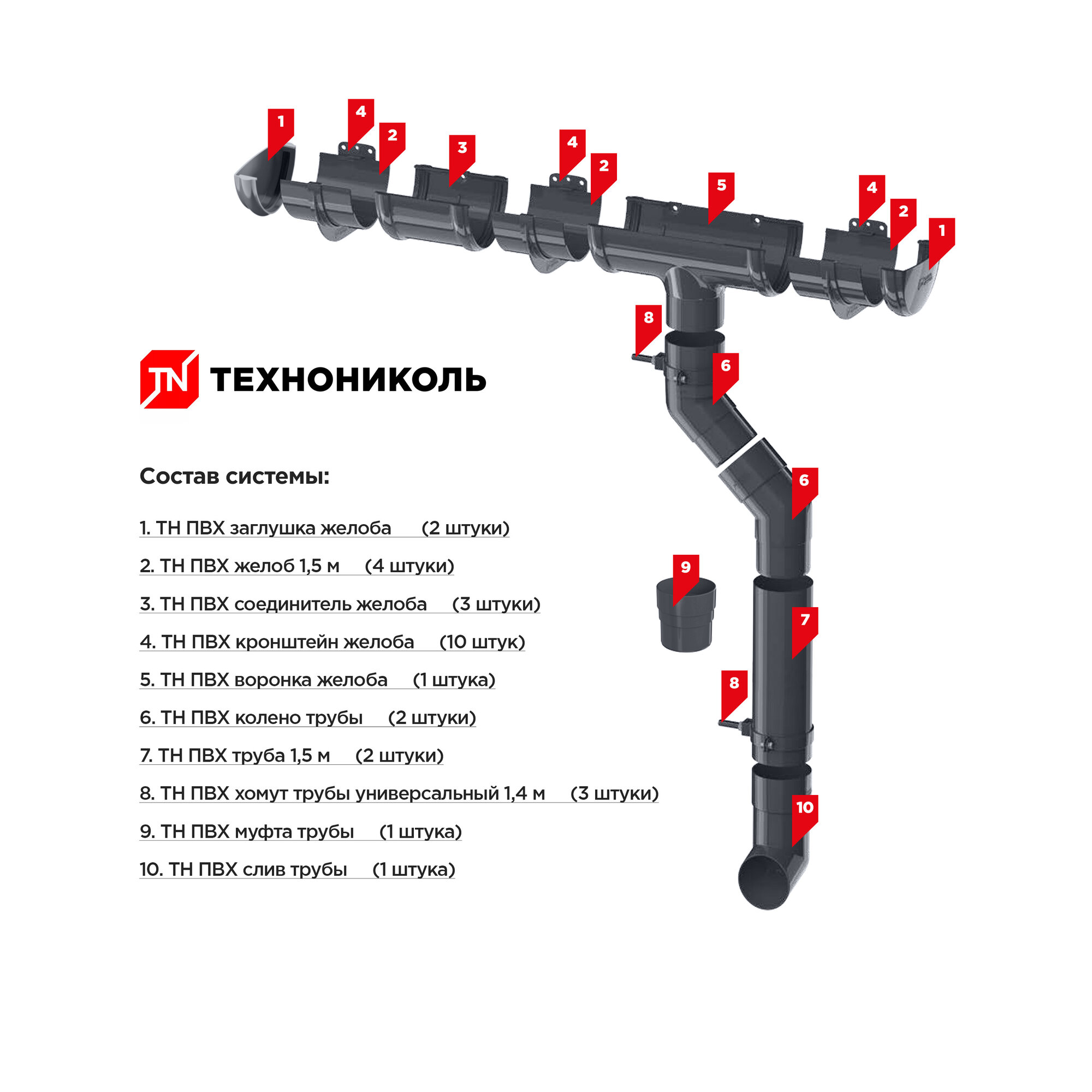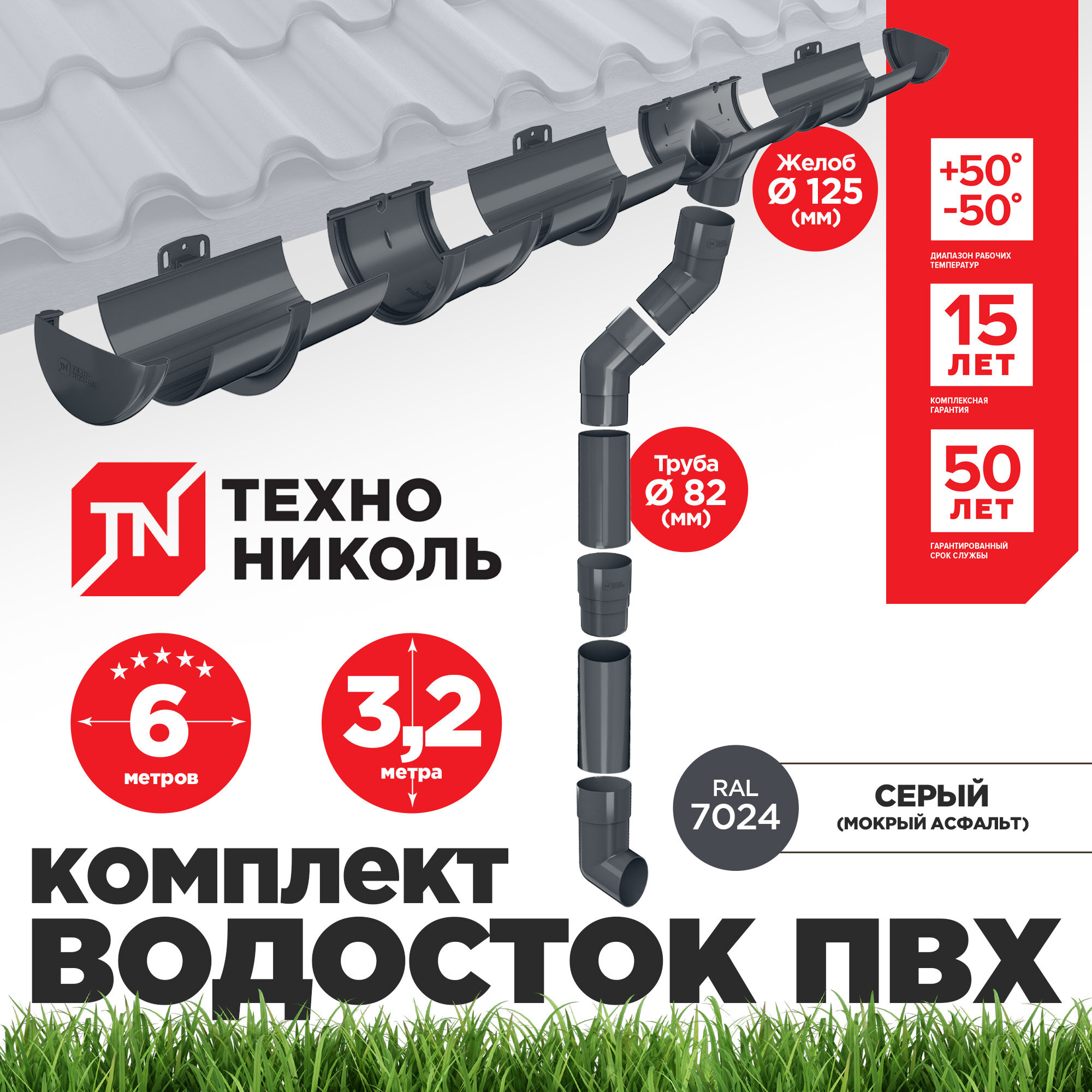 Комплект Водосточной Системы ТехноНиколь оптима для ската 6 м , цвет серый: сравнение цен, характеристики, фото, актуальное наличие и цены.
