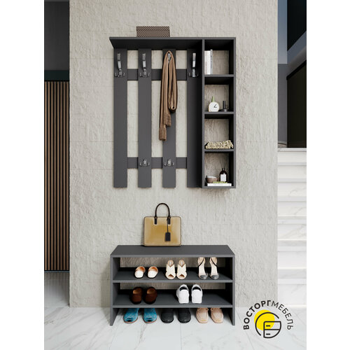 Прихожая «ВосторгМебель» — это практичный набор, включающий в себя настенную вешалку и обувницу, созданный для организации порядка в прихожей, гардеробной или на даче. Комплект, выполненный в современном минималистичном стиле из надежного материала ЛДСП, легко и надежно крепится на стену, экономя пространство. Настенная вешалка в сером цвете оснащена четырьмя прочными хромированными крючками для верхней одежды, головных уборов и сумок. Дополнительные два крючка интегрированы в дизайн обувницы, общее количество крючков в комплекте — шесть. Универсальная открытая полка обувницы предназначена не только для обуви, но и для хранения различных аксессуаров. Весь комплект производится на собственном производтве компании «ВосторгМебель» и отличается высоким качеством сборки. Изделия представлены в классическом цвете «графит», который легко вписывается в любой интерьер, добавляя ему свет, чистоту и аккуратный внешний вид. Это решение идеально сочетает в себе функциональность, долговечность и эстетику для городского жилья или загородного дома.