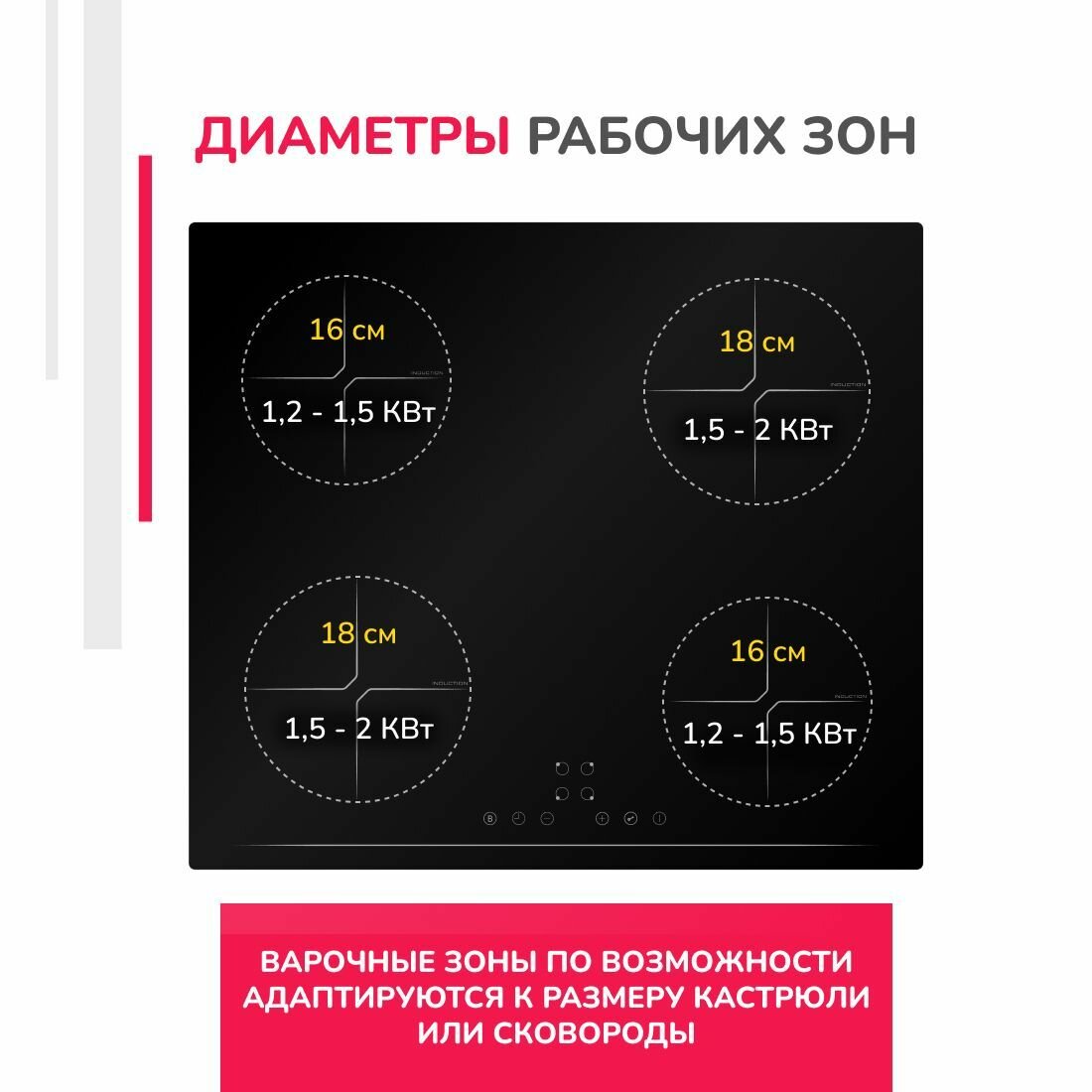 | Размеры варочной панели (ШхГхВ) | 59х52х5.50 см |