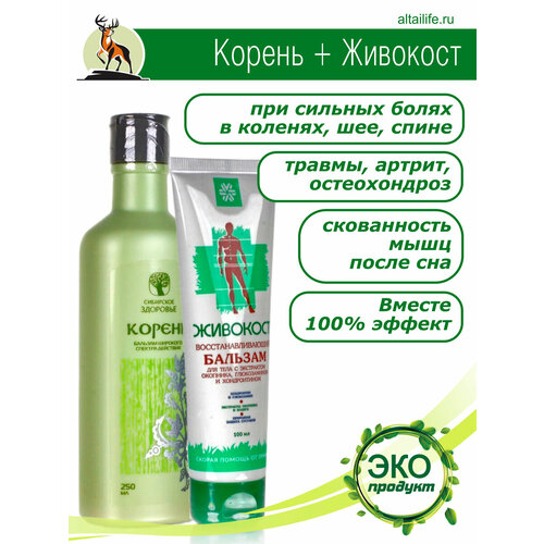 2 Сибирских бальзама Корень и Живокост, которые дополняют действие друг друга и уменьшают боль в спине и шее, в суставах и мыщцах, ногах - коленях и стопах.