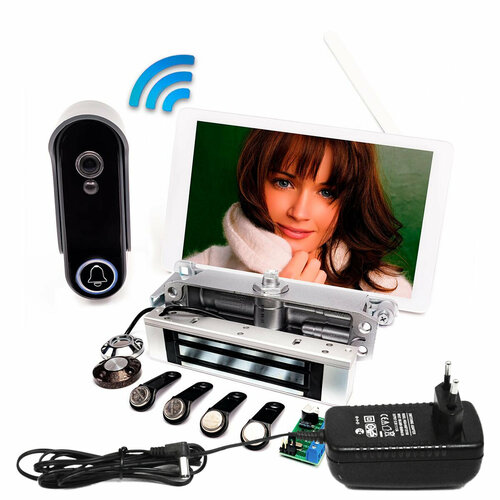 - Готовая система контроля доступа. В комплект входит сенсорный монитор диагональю 7 дюймов, вызывная панель, электромагнитный замок и все необходимое для установки