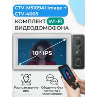 Комплект WiFi видеодомофон для квартиры: монитор 10″ CTV-M5109AI Image (W) + вызывная панель CTV-D4005 (G), для дома или офиса, управление со смартфона, AI-функции, подключение к подъездному домофону: сравнение цен, характеристики, фото, актуальное наличие и цены.