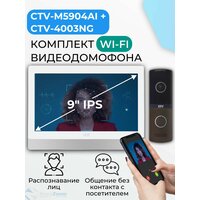Комплект WiFi видеодомофон для квартиры: монитор 9" CTV-M5904AI (W) + вызывная панель CTV-D4003NG (B), для дома или офиса, управление со смартфона, AI-функции, подключение к подъездному домофону