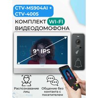 Комплект WiFi видеодомофон для квартиры: монитор 9" CTV-M5904AI (W) + вызывная панель CTV-D4005 (G), для дома или офиса, управление со смартфона, AI-функции, подключение к подъездному домофону